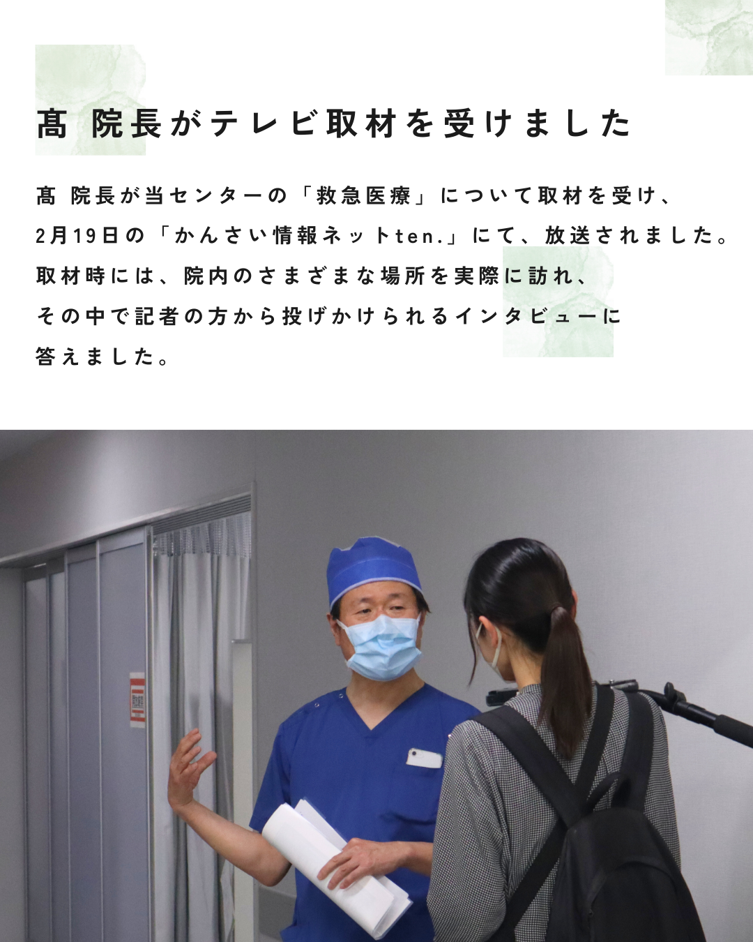 髙 院長が当センターの「救急医療」について取材を受け、