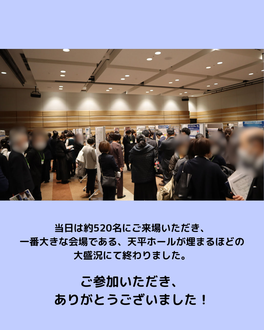 当日は約520名にご来場いただき、一番大きな会場である、天平ホールが埋まるほどの大盛況にて終わりました。